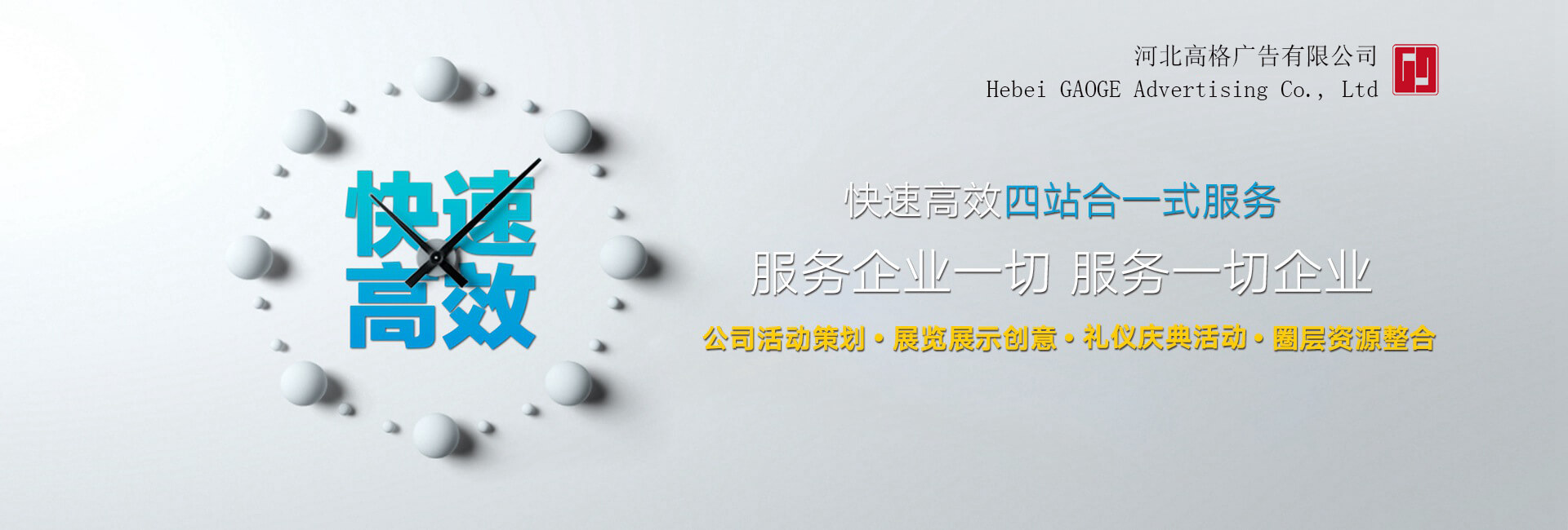 河北高格廣告有限公司是一家專(zhuān)業(yè)致力于大型文化活動(dòng)組織策劃、展覽展示工程策劃、展臺(tái)設(shè)計(jì)制作、特裝展臺(tái)搭建、會(huì)議會(huì)場(chǎng)布置、巡回展覽、路演、公關(guān)推廣執(zhí)行、會(huì)議慶典禮儀、路演設(shè)備租賃、倉(cāng)儲(chǔ)等一站式的專(zhuān)業(yè)服務(wù)公司。本公司憑借創(chuàng)新領(lǐng)先的服務(wù)理念,大型的廠房空間,現(xiàn)代化的機(jī)械設(shè)備,高素質(zhì)專(zhuān)業(yè)的服務(wù)團(tuán)隊(duì),及在該行業(yè)多年的實(shí)戰(zhàn)經(jīng)驗(yàn),為地產(chǎn)營(yíng)銷(xiāo)提供了優(yōu)秀的活動(dòng)方案、為不同行業(yè)的數(shù)千家企業(yè)提供了專(zhuān)業(yè)個(gè)性化的空間展示方案,幫助客戶實(shí)現(xiàn)了自我品牌的提升和企業(yè)利潤(rùn)的雙贏。...